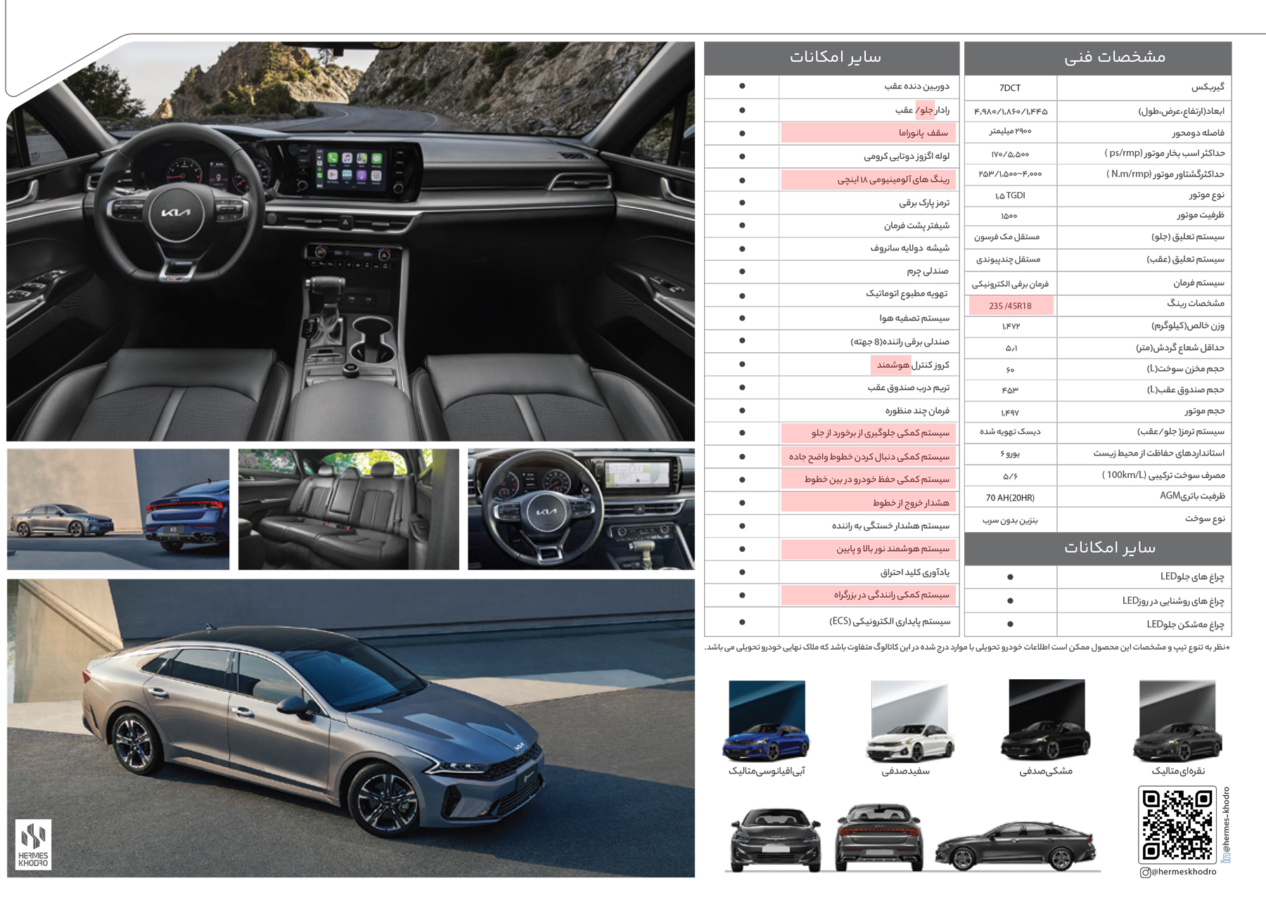 قسمت های با رنگ قرمز در کیا K5 توربو کم آپشن هرمس خودرو دیده نمی شود!