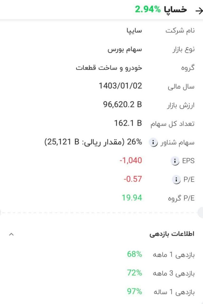 بر اساس آمار کدال ارزش سهام سایپا در بازه زمانی ۳ ماهه ۷۲ درصد و در بازه زمانی یک ماه گذشته ۶۸ درصد سود را به ثبت رسانده است.