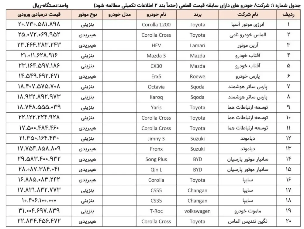 البته تأکید شده شرکت‌های عرضه‌کننده خودرو پس از اعلام قیمت قطعی خودروها نسبت به فراخوان خریداران جهت تکمیل وجه اقدام خواهند نمود.