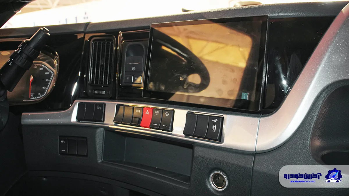 این خودروی باری به کروز کنترل، سنسور خواب راننده، ترمز اضطراری اتوماتیک، رادار خط خوان، ریتاردر دو زمانه، سنسور نور، سنسور باران، چراغ روشنایی روز، صندلی های سِگِه، نمایشگر لمسی، تهویه اتوماتیک، ترمز پارک برقی، اتوهلد، کولر درجا، یخچال ۳۲ لیتری، سنسور باد تایرها و… مجهز است.