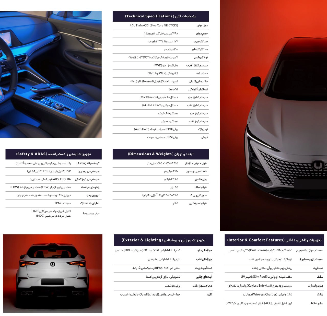مشخصات فنی و امکانات چانگان یونی تی