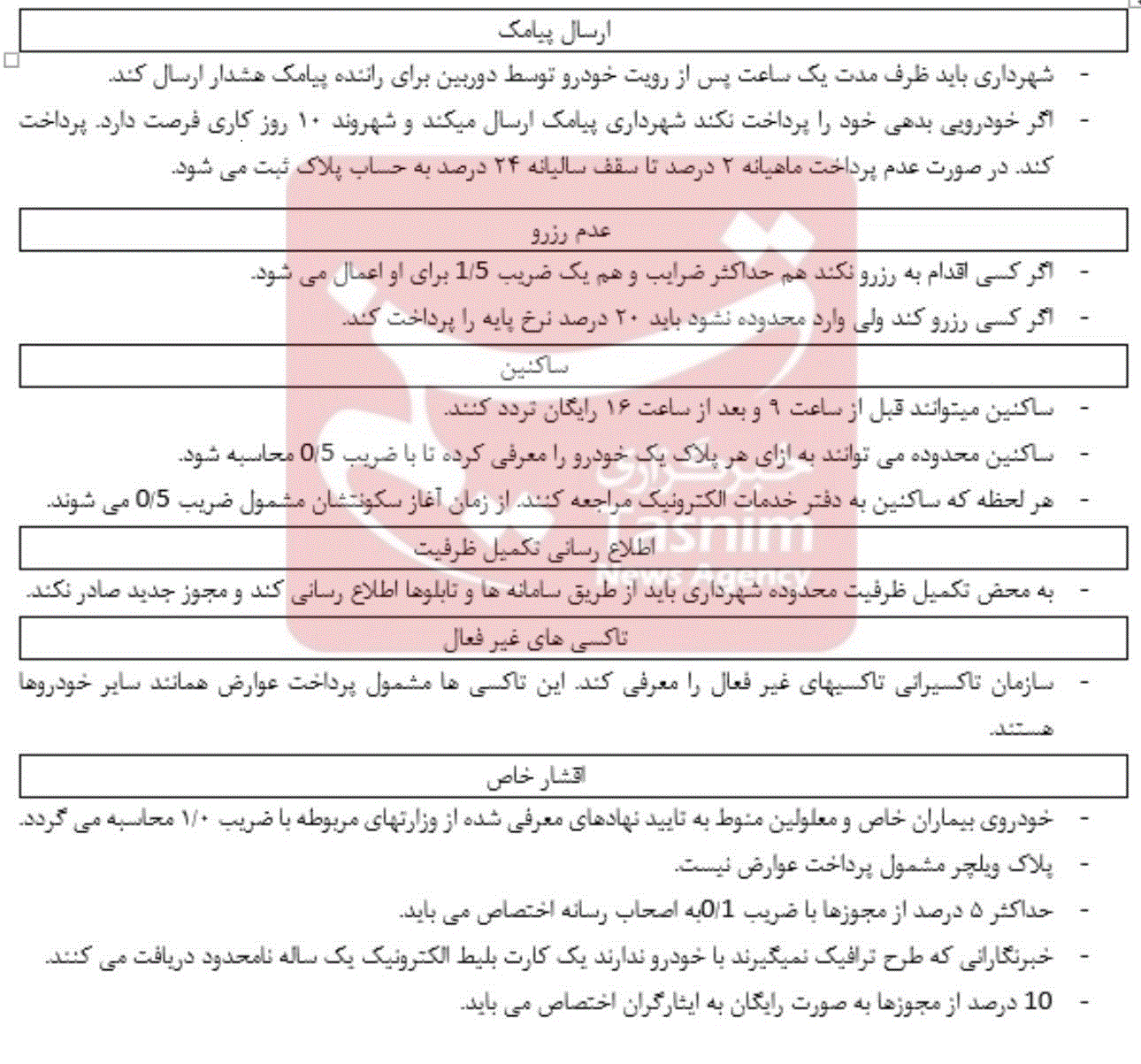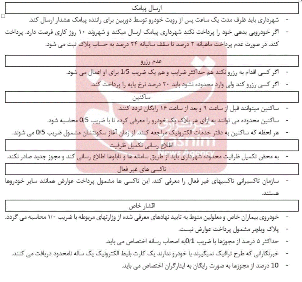 بر همین اساس، شورای اسلامی شهر تهران همهساله موظف است نرخ عوارض ورود به محدوده طرح ترافیک و همچنین ضوابط مربوط به تردد خودروهای مختلف را متناسب با شرایط اقتصادی، اجتماعی و زیستمحیطی شهر بازنگری و تصویب کند. این ضوابط شامل نحوه محاسبه عوارض، تمایز میان انواع خودروها، وضعیت معاینه فنی، ساعات تردد و شرایط خاص برای گروههایی از شهروندان یا وسایل نقلیه است که بنا به ضرورت شغلی یا خدماتی ناچار به ورود به این محدوده هستند.