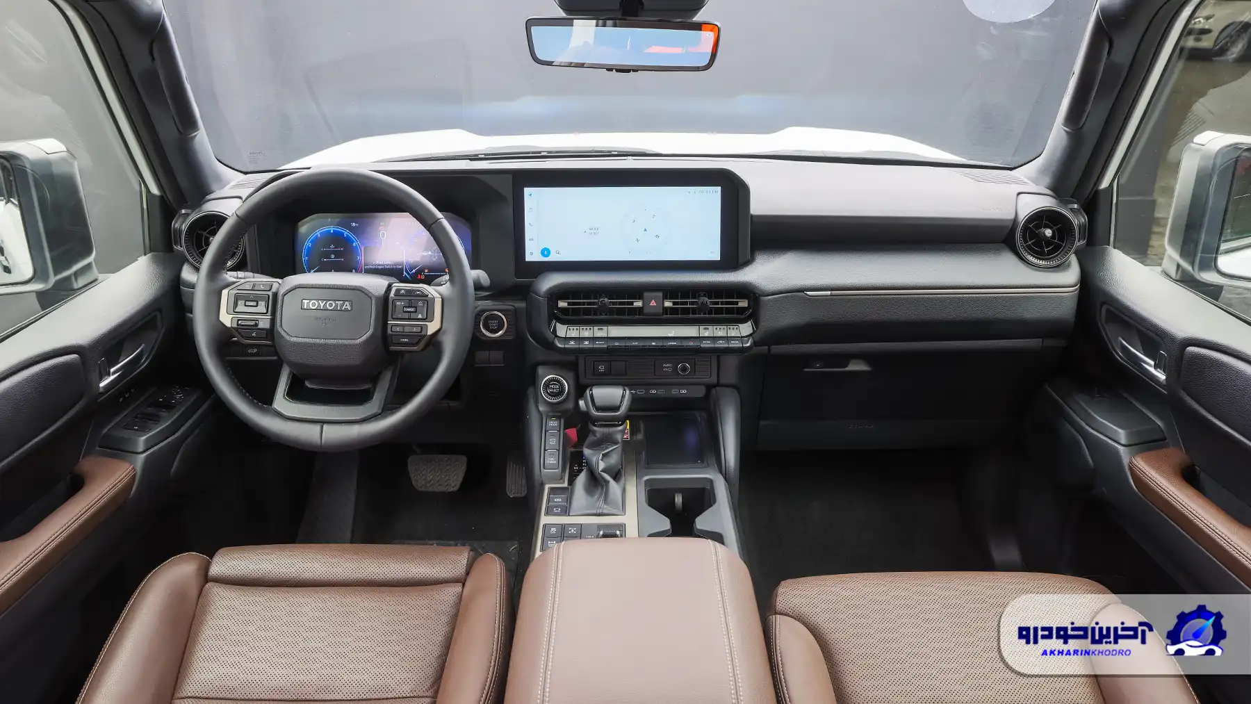 انرژی موتور آسیا نسخه ادونچر از تویوتا پرادو جدید را به بازار ایران آورده است و این نسخه فول ترین ورژنی است که در دور جدید واردات می بینیم. کابین پرادوی J250 با تمرکز بر کاربردی بودن و دوام برای آفرود طراحی شده و داشبورد فرم افقی دارد تا دید راننده به مسیر بهتر و حس تسلط بیشتر ایجاد شود. دکمه های فیزیکی زیاد برای تنظیمات اصلی حفظ شده و کیفیت متریال بیشتر مقاوم و ضد خش انتخاب شده تا در استفاده سخت دوام بالایی داشته باشد.