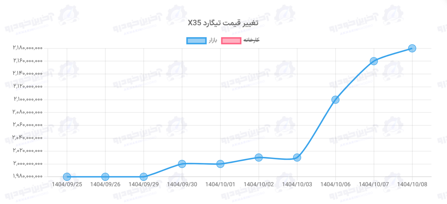 نمودار قیمت تغییرات قیمت X35 پلاس تیگارد موتور