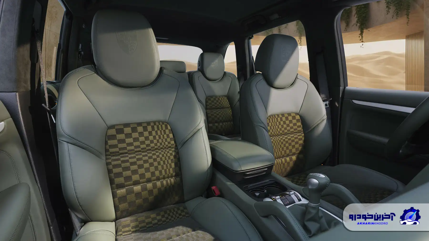 در داخل کابین پورشه کابین GTS تغییرات چشمگیرتر هستند. بخش Sonderwunsch از چرم سبز انگلیسی در کنار پارچه نمادین نقش پاشا و ترکیب مشکی و زیتونی بهره برده است؛ طرحی که حتی محفظه داشبورد را نیز پوشانده است. تریم‌ها، دستگیره‌ها و قاب‌ها با آلومینیوم برس‌ خورده روشن تکمیل شده‌اند تا کنتراست جذابی ایجاد کنند.