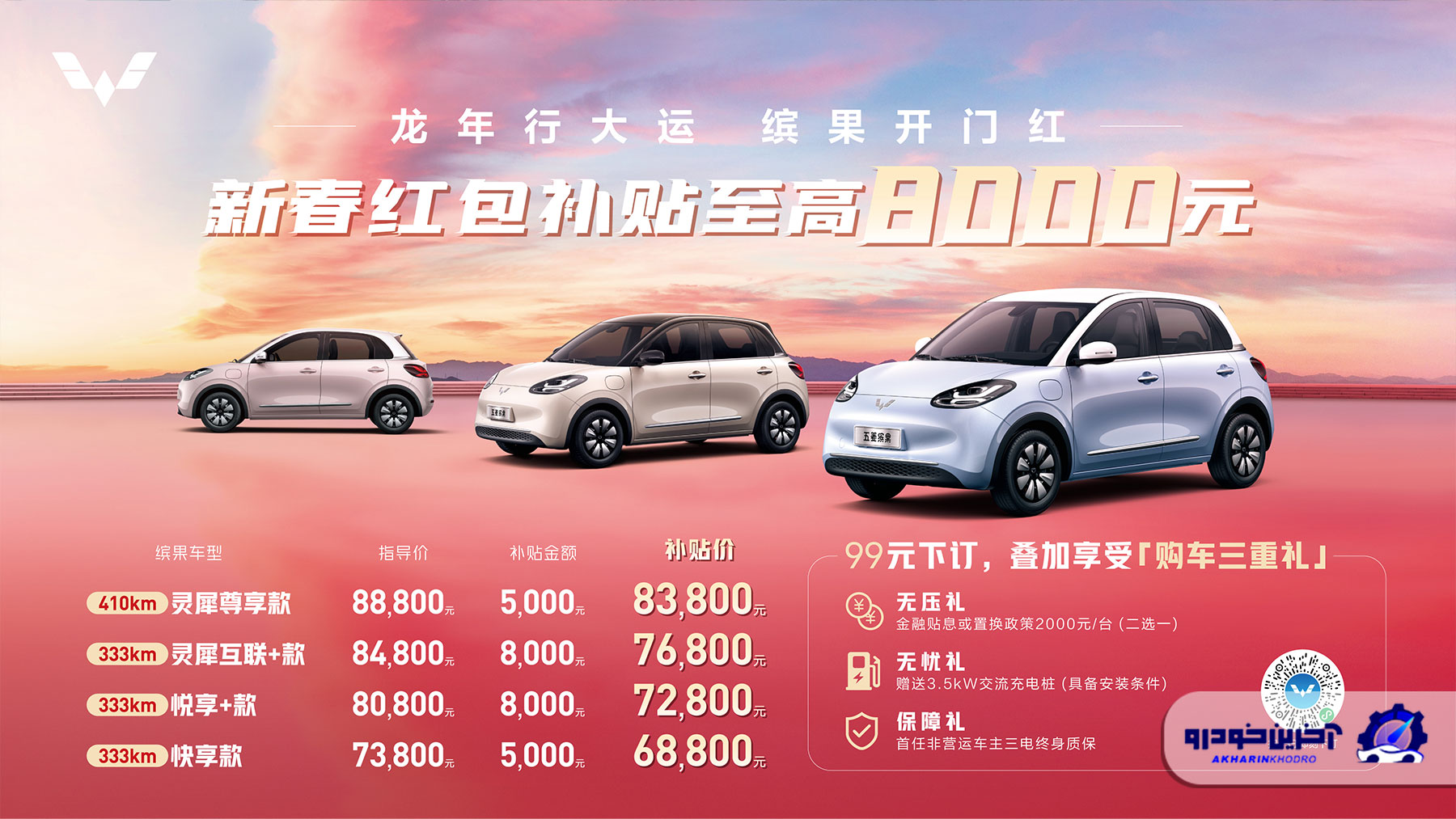 گفتنی است مدل های پایه از وولینگ بینگو که بردی برابر با ۲۰۳ کیلومتر دارد، مشمول تخفیف نشده و با همان قیمت سابق به فروش می رسند. این نسخه ها ۵۹,۸۰۰ و ۶۵,۸۰۰ یوان (معادل ۴۶۲ الی ۵۰۸ میلیون تومان) قیمت دارند.