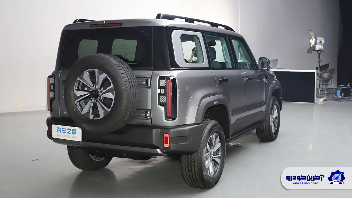 یکی دیگر از جزئیات BJ40 یک درب عقب است که از دو قسمت ساخته شده است. قسمت بالایی در واقع یک شیشه که به سمت بالا باز می شود و در قسمت پایینی، یک درب عقب چرخان است که چرخ زاپاس روی آن نصب شده است.