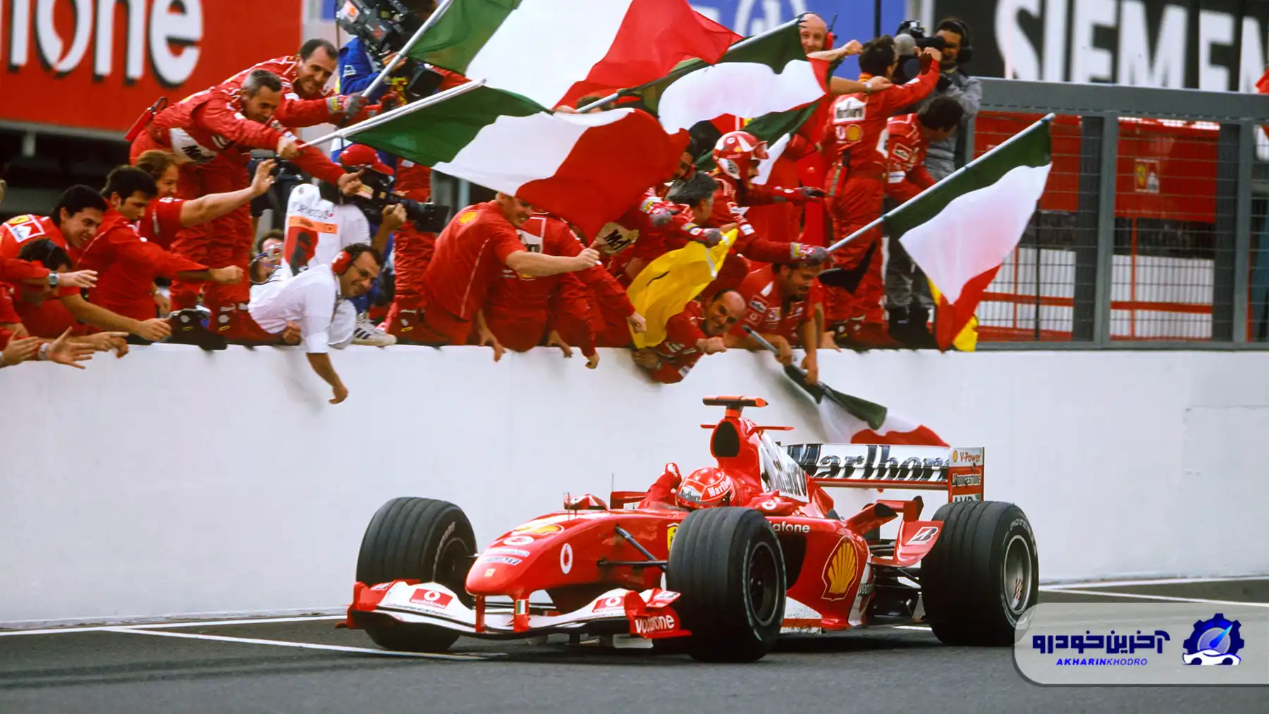 فراری F2002: ماشین فراری ۲۰۰۲ تقریباً به اندازهی نسل قبلی خود در سال ۲۰۰۴ مسلط بود و در آن فصل ۱۵ مسابقه از ۱۹ مسابقه را برد. از بسیاری جهات، این خودرو نمونه اولیه خودروی سال ۲۰۰۴ بود، با فاصله محوری کوتاه و ابعاد کاملاً بسته، در مقایسه با خودروی بلندتر ۲۰۰۳GA.