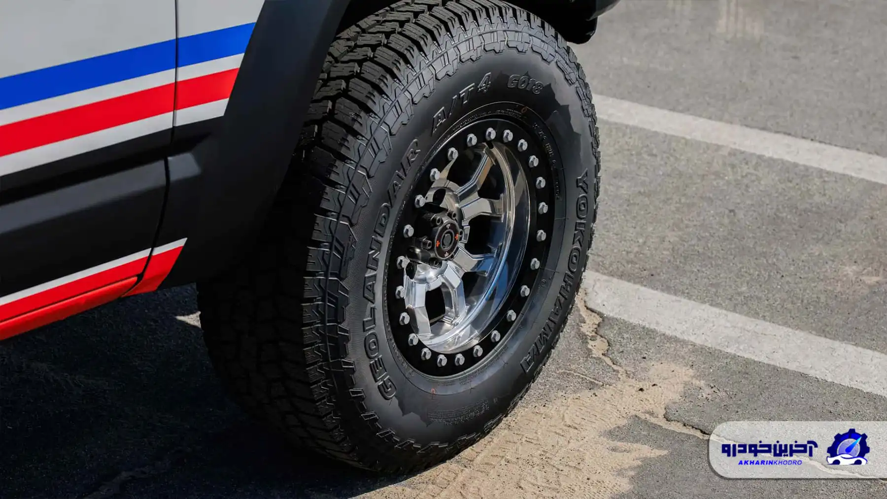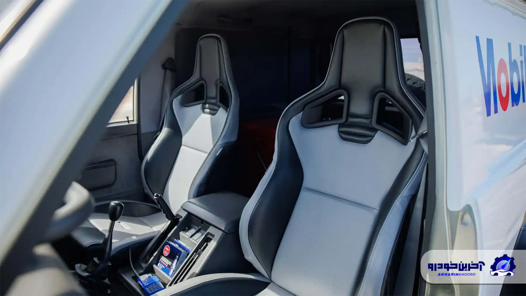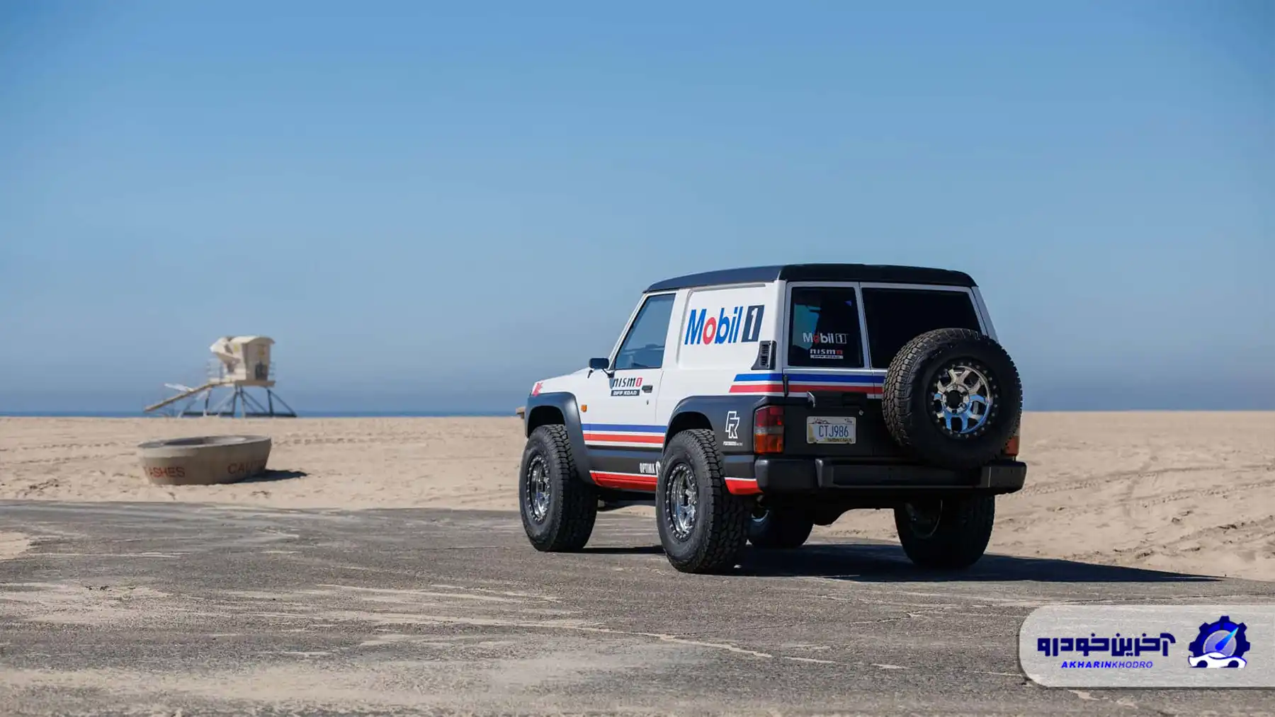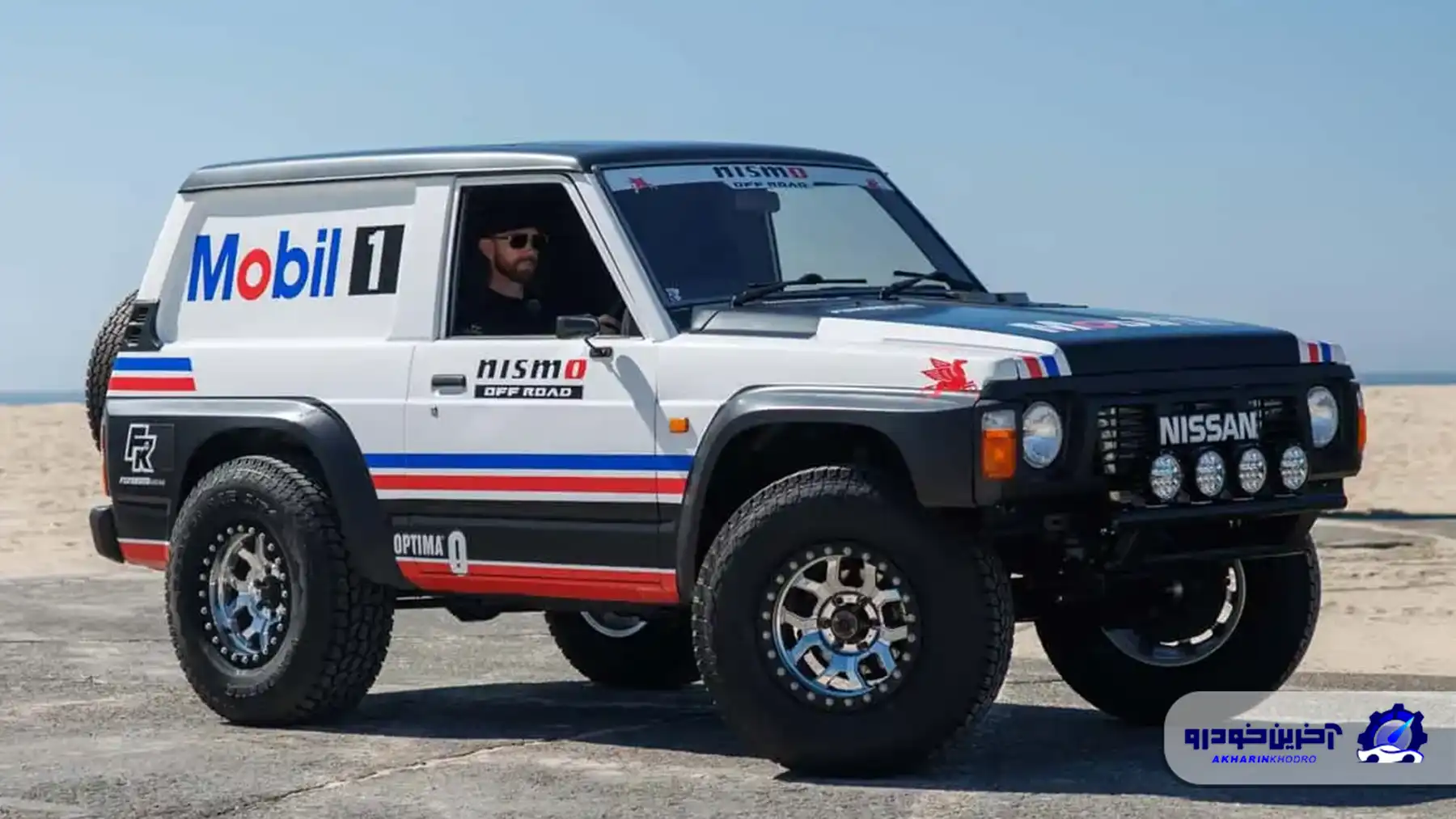 ظاهر این نیسان پاترول به اندازه مشخصات فنی آن جذاب و جسورانه است. ترکیب رنگ قرمز، سفید و آبی در کنار گلگیرهای مشکی، جلو پنجره تیره رنگ و لوگوی بزرگ Mobil 1 جلوهای کاملاً اسپرت و تهاجمی به خودرو بخشیده است. در نمای جلو، چهار چراغ کمکی نیسمو و چراغهای Holley RetroBright نصب شدهاند تا روشنایی لازم برای رانندگی در شب فراهم شود.