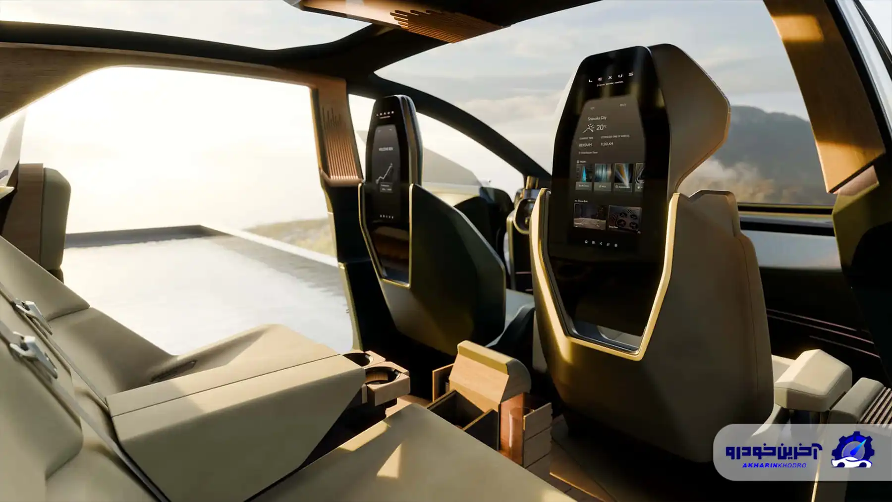 صندلی راننده با رنگ آبی روشن از سایر صندلی‌های کرم ‌رنگ متمایز است. فرمان سنتی حذف شده و جای خود را به فرمان یوغ‌ مانند داده؛ دکمه‌های فیزیکی حذف شده‌اند و تقریباً همه چیز در مفهومی جدید لکسوس لمسی است.
