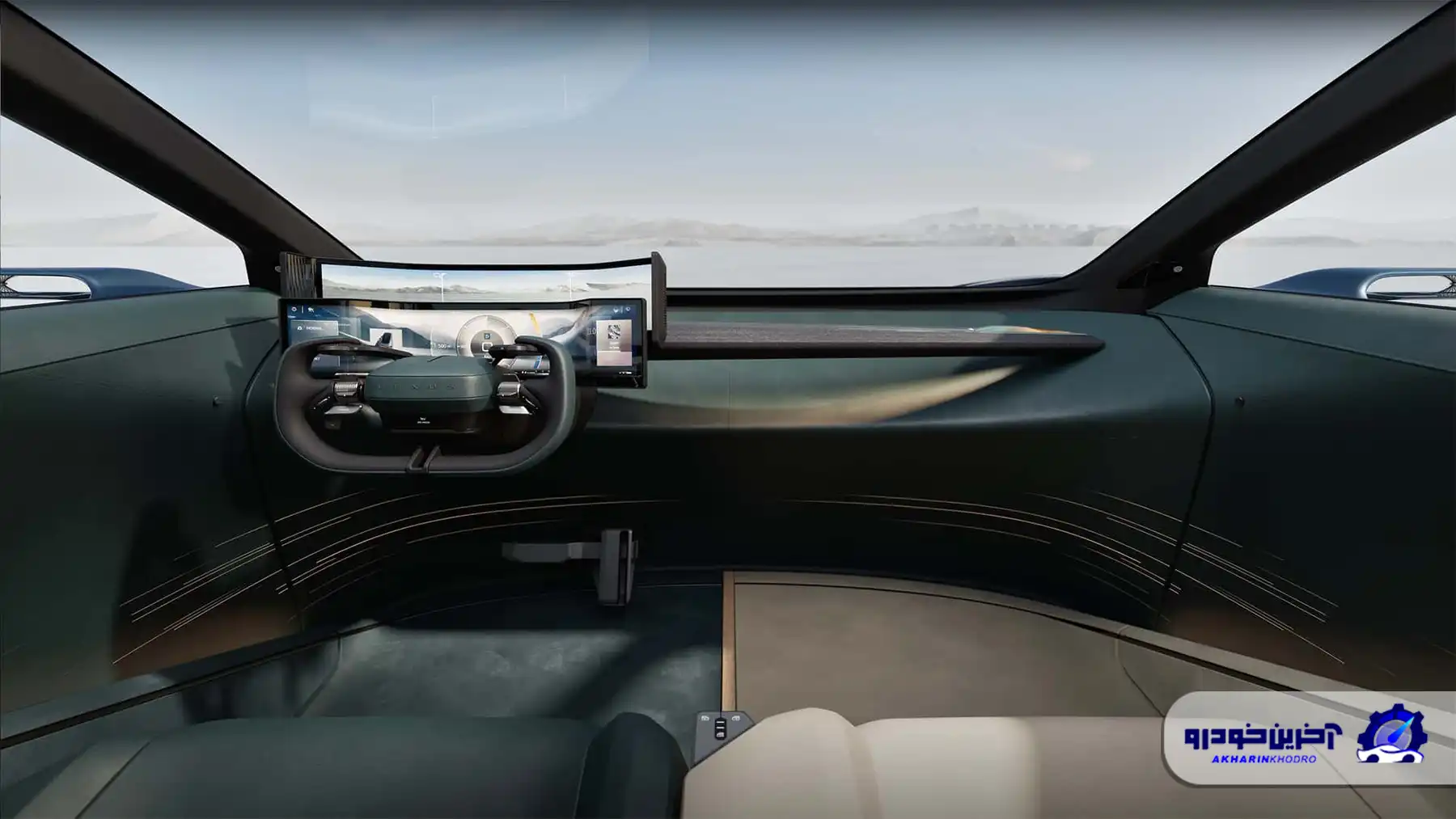 درون کابین، همه چیز متفاوت است. پنل پشت فرمان دو لایه طراحی شده و شامل نمایشگرهای عریض می‌شود. مقابل سرنشین جلو نیز یک نمایشگر بزرگ مستقل نصب شده تا حس همگامی با فناوری را تقویت کند.