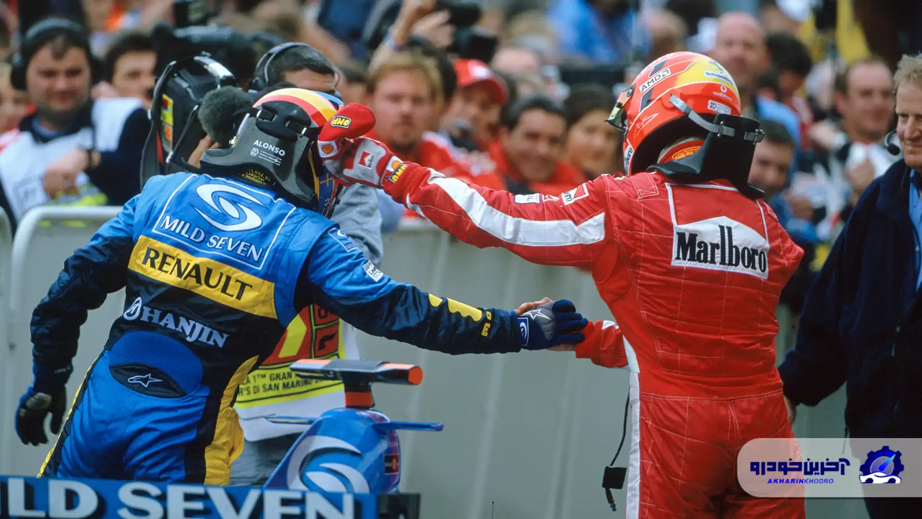 پس از رکوردشکنی پنج قهرمانی متوالی جهان و شش عنوان قهرمانی تیمی، به چالش کشیدن شوماخر و فراری، کاری دشوار به نظر می‌رسید. با این حال، در بحبوحه معرفی مقررات فنی جدید، فرناندو آلونسو (Fernando Alonso) و رنو در سال ۲۰۰۵ تغییر بزرگی را آغاز کردند. همراه با تغییرات در قوانین آیرودینامیک، تعویض لاستیک در طول توقف‌های پیت ممنوع شد و در دوران به اصطلاح جنگ لاستیک بین بریجستون و میشلن، این امر به نفع تیم‌هایی بود که از لاستیک بادوام‌تر استفاده می‌کردند. نتیجه این بود که شوماخر و فراری که قبلاً بر مسابقات مسلط بودند، در سال ۲۰۰۵ بخت خود را تغییر دادند و این راننده آلمانی تنها یک پیروزی کسب کرد. در همین حال، آلونسو با کسب هفت پیروزی، کیمی رایکونن (Kimi Raikkonen) از مک‌لارن را با ۲۱ امتیاز اختلاف شکست داد و به عنوان قهرمانی رسید و پس از آن در سال ۲۰۰۶ برای دومین بار نیز قهرمان جهان شد.