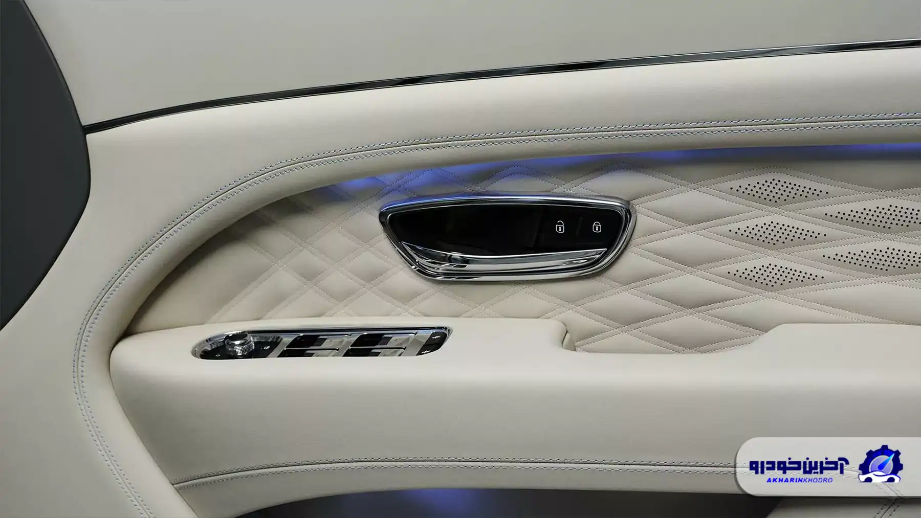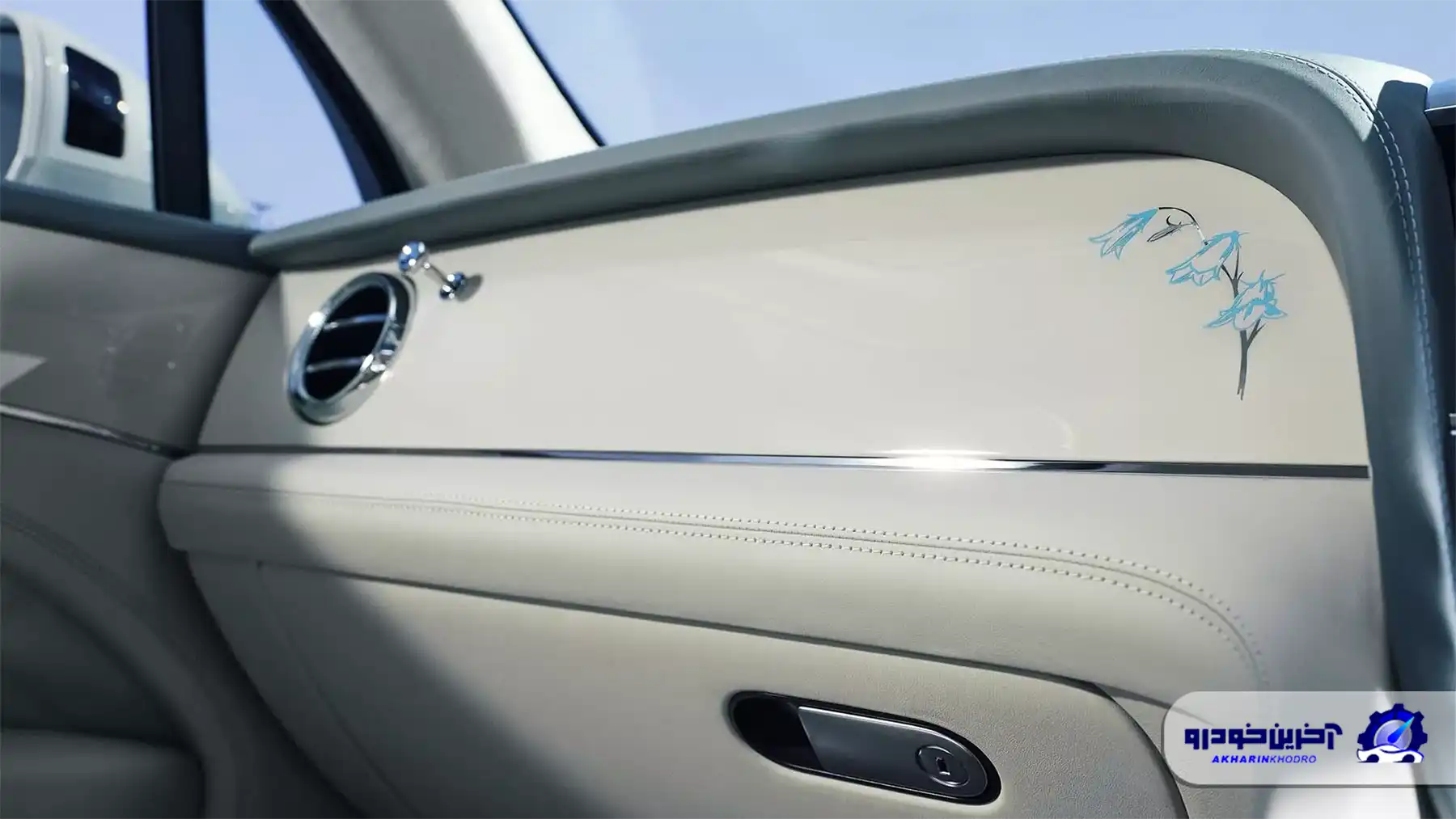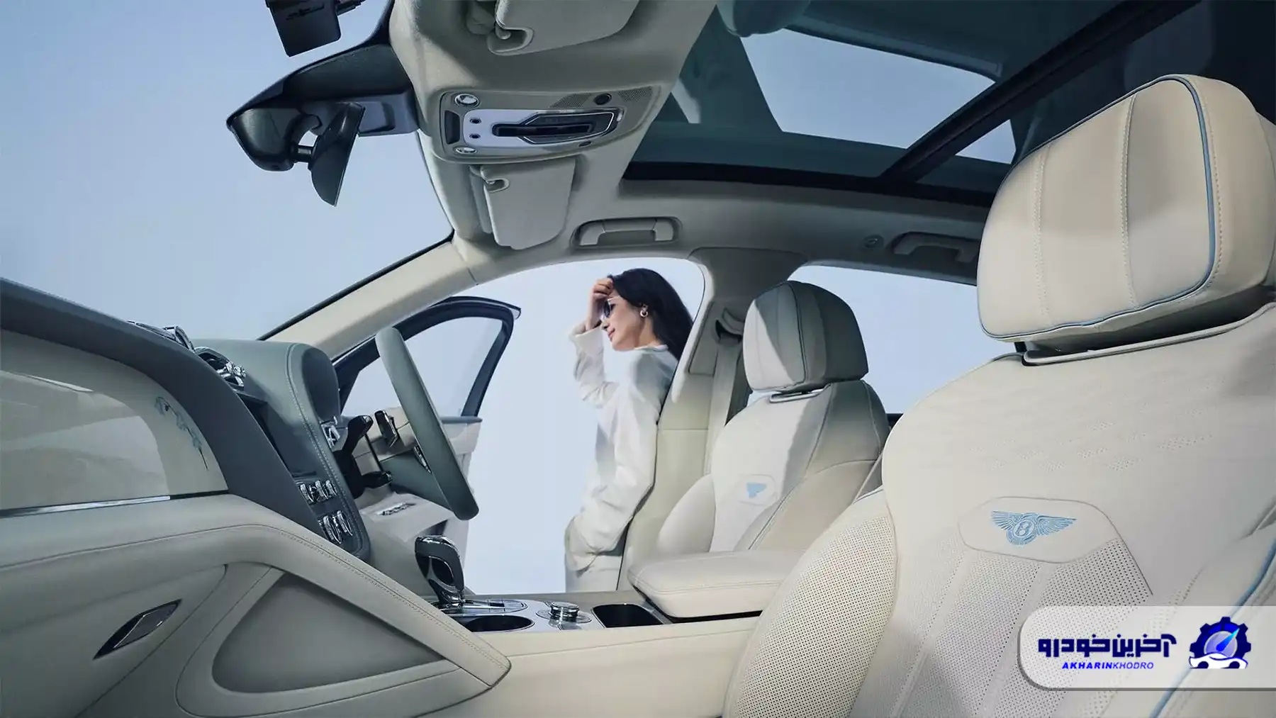 در فضای داخلی این بنتلی بنتایگا مخصوص بانوان نیز تم آبی به صورت کنترلشده و هنرمندانه ادامه پیدا کرده است. نشانهای بنتلی روی پشتی صندلیها با نخ آبی گلدوزی شدهاند و نقوش گلهای ظریف آبی روی داشبورد دیده میشود.