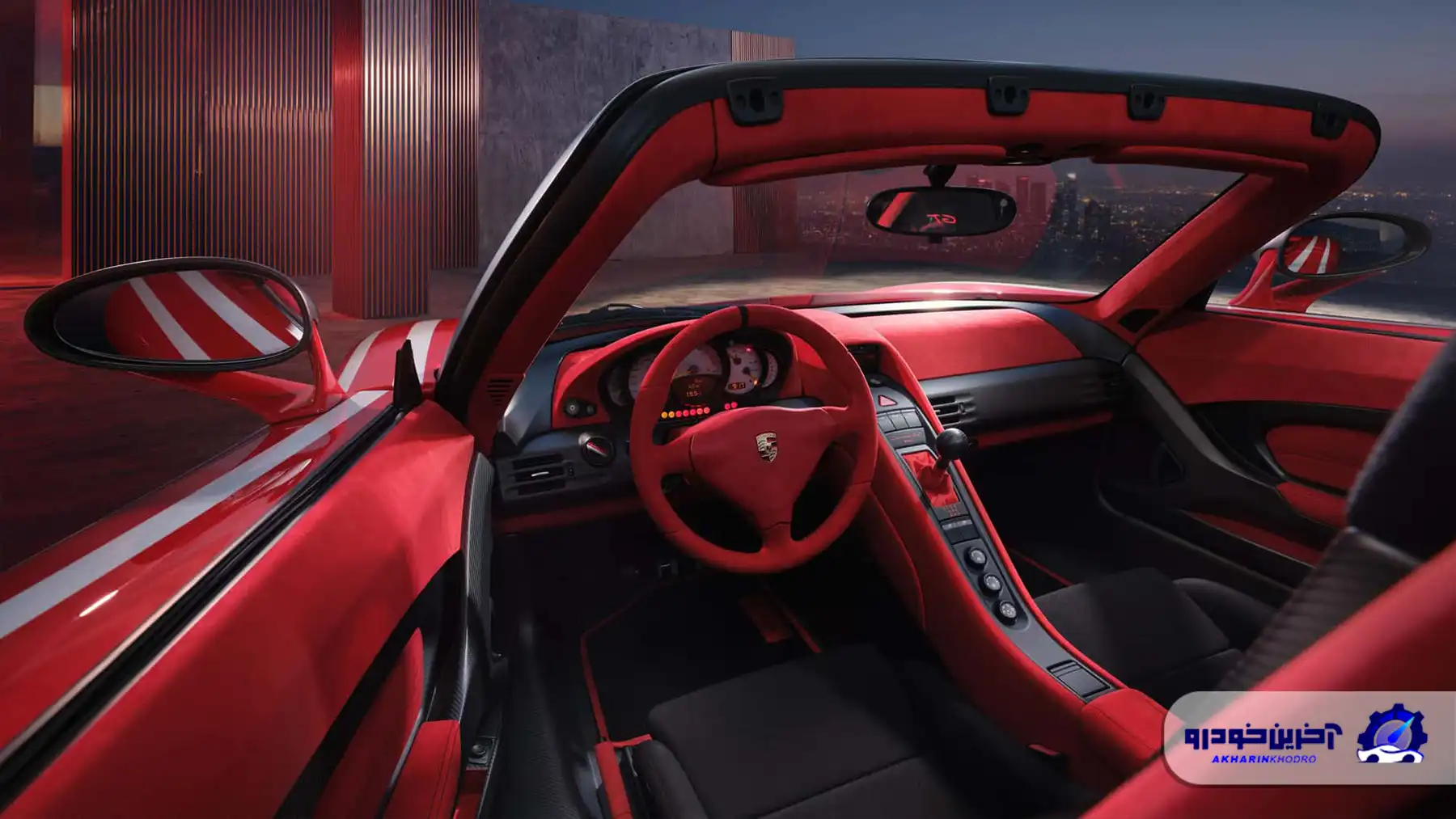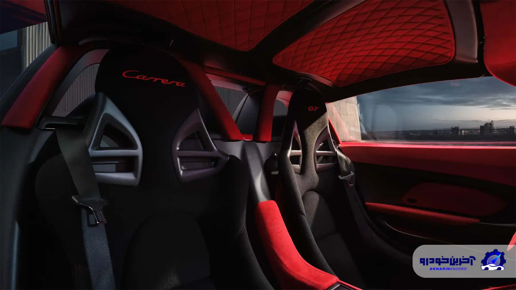 تغییرات فقط به نمای بیرونی پورشه کاررا جی تی محدود نبوده و کابین نیز به طور کامل متحول شده است. فضای داخلی در آلکانترای قرمز غرق شده؛ از داشبورد و رودریها گرفته تا فرمان و کنسول مرکزی همگی دارای پوششی به این رنگ هستند. حتی محفظه بار جلو نیز با همین ماده گرانقیمت پوشیده شده و یک ست چمدان قرمز رنگ در آن قرار دارد.