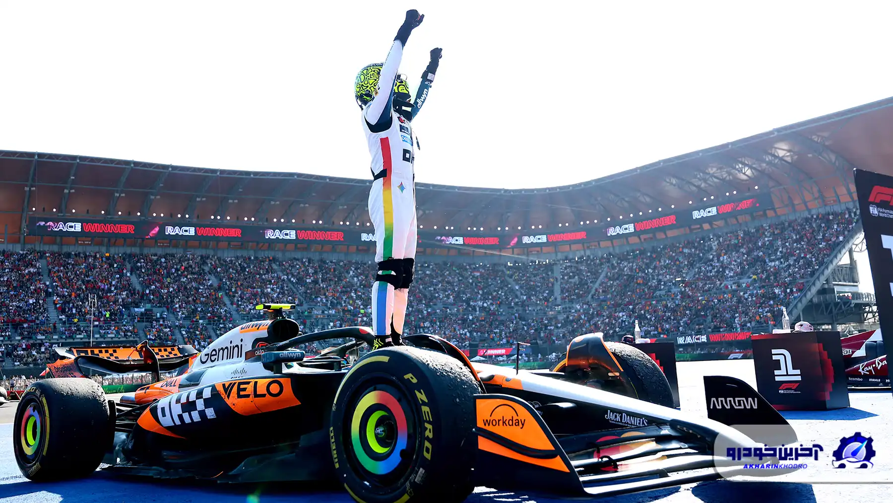 شاید جایگاه سوم در ابوظبی کمی ناامیدکننده به نظر برسد اما برای قهرمان شدن در مسابقات F1 باید زیرک بود! شروع مسابقه با هیجان همراه بود، در دورهای اولیه فشار فراری را دفع کرد و این بار تیمش در توقف‌های پیت و استراتژی عالی عمل کرد، از تمامی جهات رانندگی سرراستی انجام داد، همه دورها را به زیبایی به پایان رساند و یک سال خاطره‌انگیز را رقم زد: خانم ها آقایان معرفی می‌کنم، لاندووووو نوریس، قهرمان فصل ۲۰۲۵ فرمول یک!