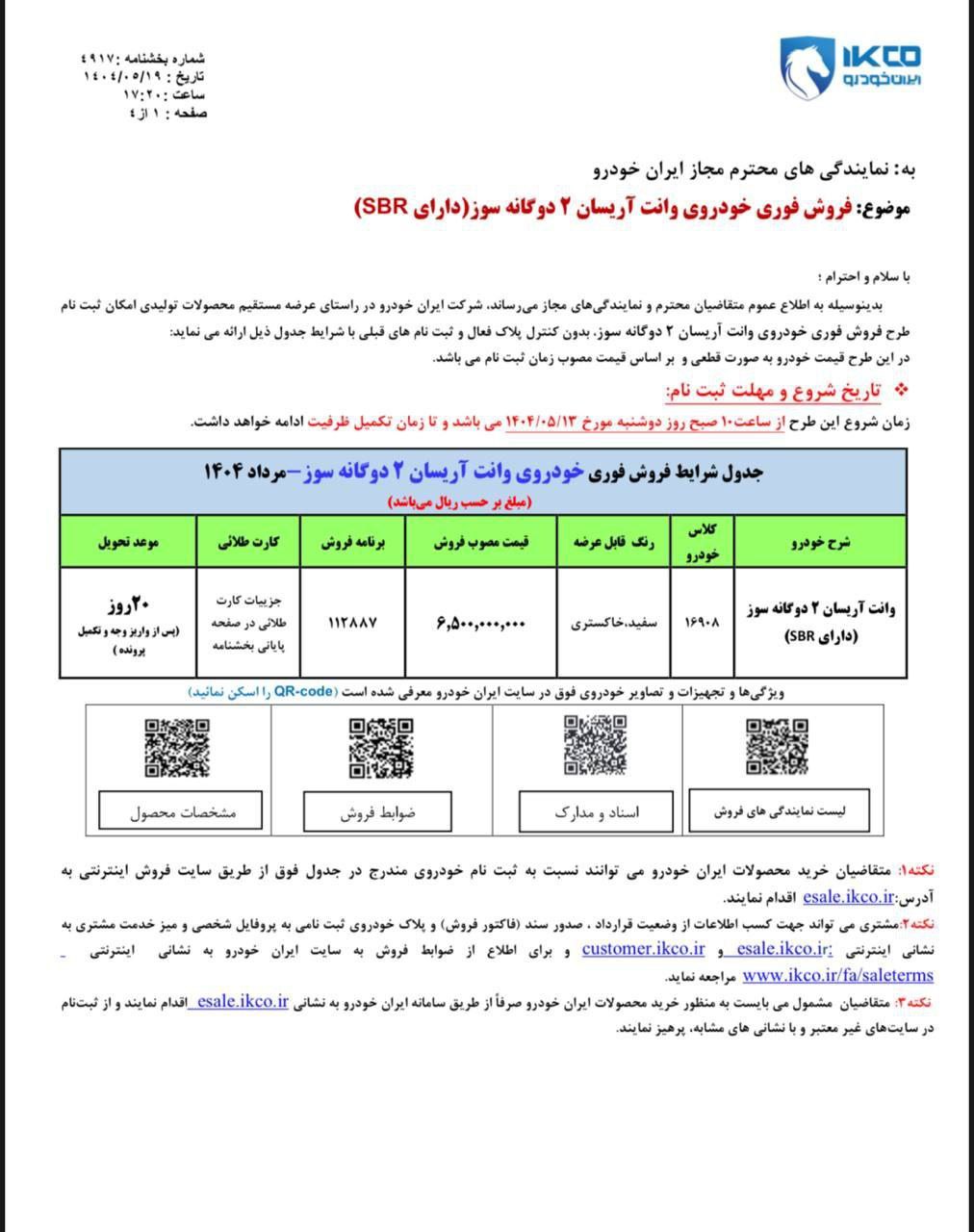 شرایط فروش آریسان ۲ با قیمت جدید اعلام شد – مرداد ۱۴۰۴