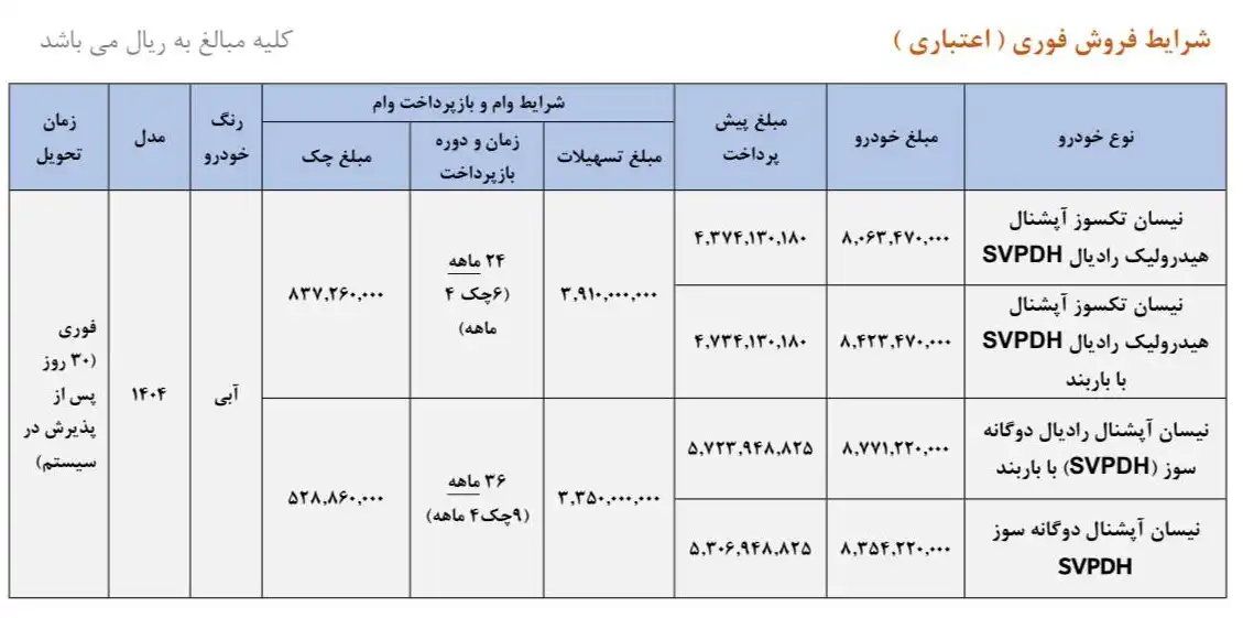 ۴ Responses to “شرایط فروش اقساطی وانت نیسان زامیاد – شهریور ۱۴۰۴”