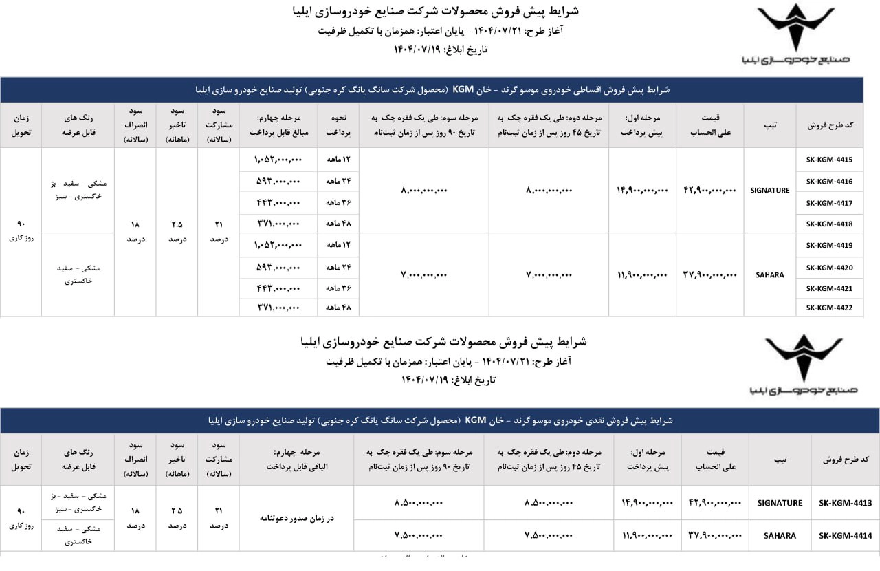 صنایع خودروسازی ایلیا، شرایط فروش موسو گرند خان را ویژه مهرماه ۱۴۰۴ اعلام کرده و قرار است این خودرو را به صورت نقدی و اقساطی به فروش برساند.