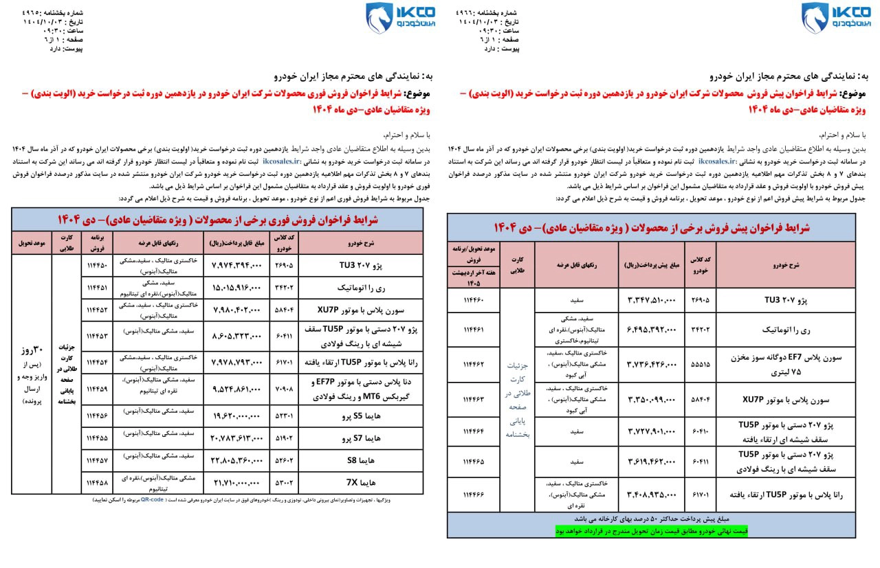 شرایط فروش محصولات ایران خودرو ویژه طرح عادی اعلام شد - دی 1404