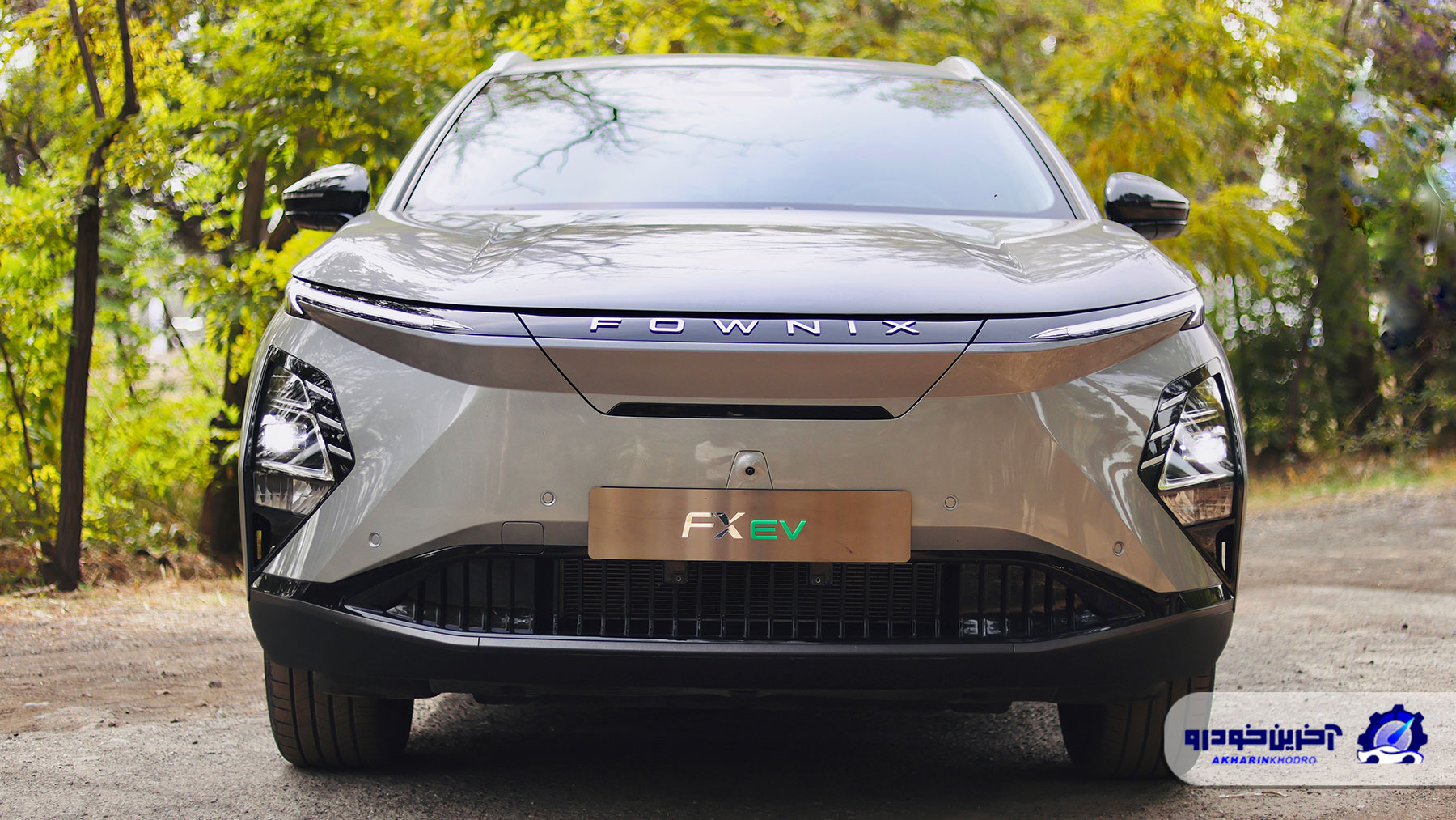 نمای جلو این خودرو اشتراکات زیادی با نسخه بنزینی فونیکس FX دارد. به عبارت نحوه قرار گیری چراغ ها داخل سپر، فرم طراحی چراغ های روشنایی روز و همچنین زیر سپر فونیکس FX برقی بسیار شبیه به چیزی است که در فونیکس FX بنزینی دیده بودیم با این تفاوت که در این خودرو دیگر خبری از جلو پنجره کهکشانی نیست و در این بخش از جلو پنجره یکپارچه و بسته استفاده شده است. نکته دیگری که باید به آن اشاره کرد درگاه شارژ این خودرو است که در قسمت جلو و زیر لوگو FOWNIX قرار گرفته است.