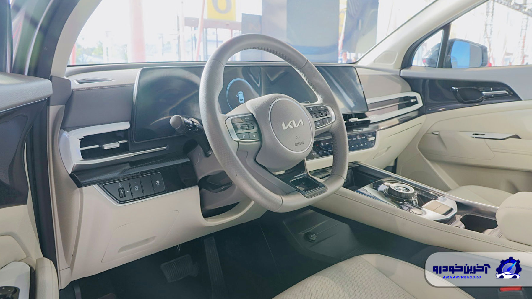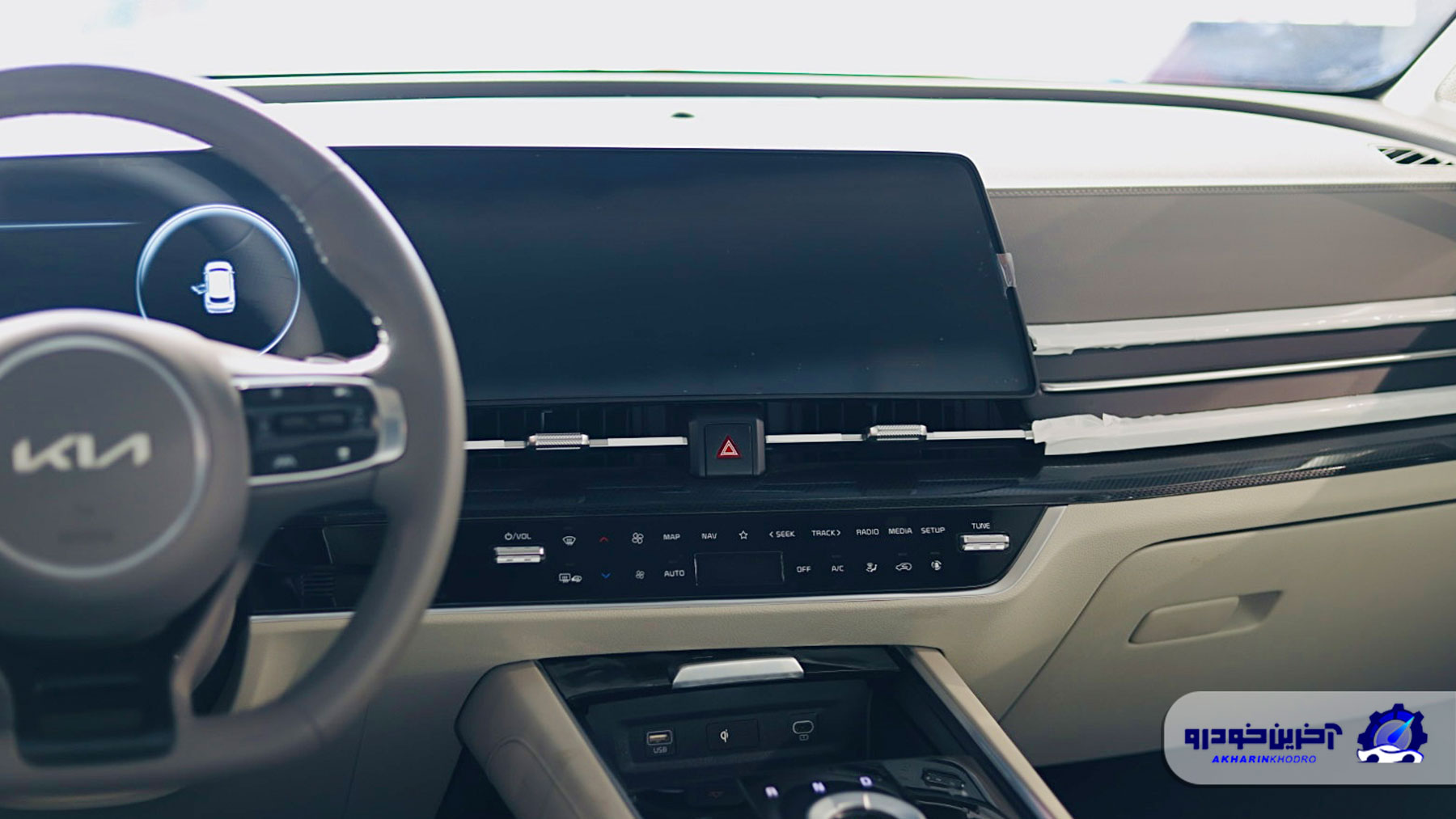 شایان ذکر است که سیستم صوتی به کار رفته در نسخه فول از کیا اسپورتیج ساخت شرکت مطرح Harman kardon است که حرفی را برای گفتن باقی نمی گذارد. غربیلک فرمان به صورت دی کات و سه شاخه بوده و درون فرمان چرم دوزی شده است. از طریق کلید های روی فرمان می توان تنظیمات مربوط به سیستم مالتی مدیا و کروز کنترل را انجام داد. در قسمت سمت چپ فرمان دکمه های مربوط به سیستم کنترل پایداری و تنظیم حالت چراغ ها نیز وجود دارند. در بخش کنسول وسط شاهد دسته دنده چرخشی الکتریکی هستیم و در قسمت کناری آن می توانیم به کلید های مربوط به اتوهلد، ترمز پارک برقی، دکمه استارت حالات رانندگی و… اشاره کنیم.