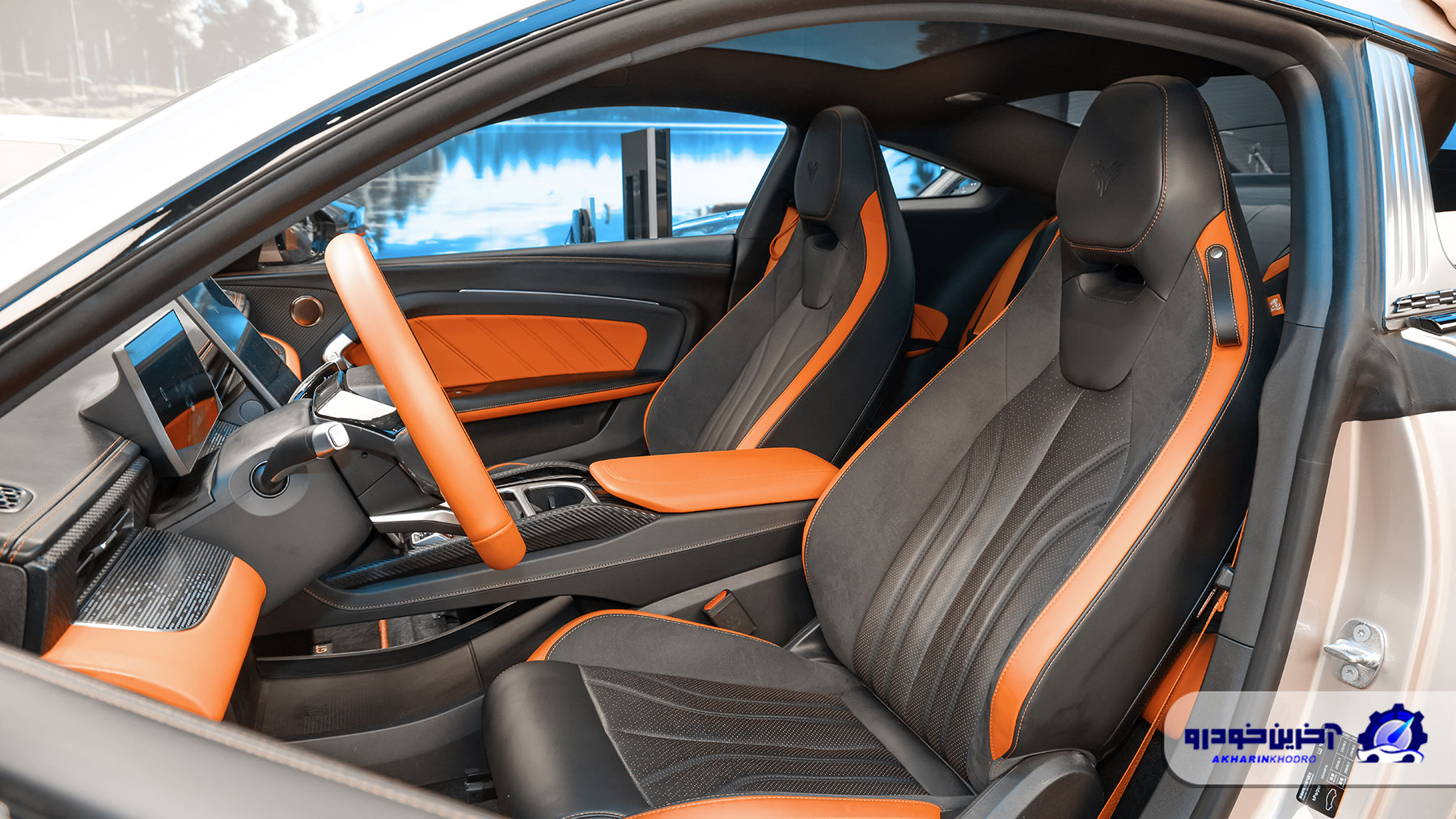 صندلیهای اسپرت این خودرو فرم و ارگونومی مطلوبی دارند و میتوانند هنگام دور زدنهای سریع، با گشتاور بالا مقابله کرده و بدن سرنشین را تا حد امکان در سر جای خود نگه دارند. یک ردیف صندلی نسبتا کوچک هم در قسمت انتهای عقبی کابین وجود دارد که البته خیلی جادار به نظر نمیرسد و بیشتر مناسب قرار دادن لوازم مسافرتی و یا حضور کودکان است. تریم نارنجی رنگ داخل کابین نیز بر حس و حال سرنشینان تاثیر میگذارد و حال و هوای اسپرت کابین را بالاتر میبرد.