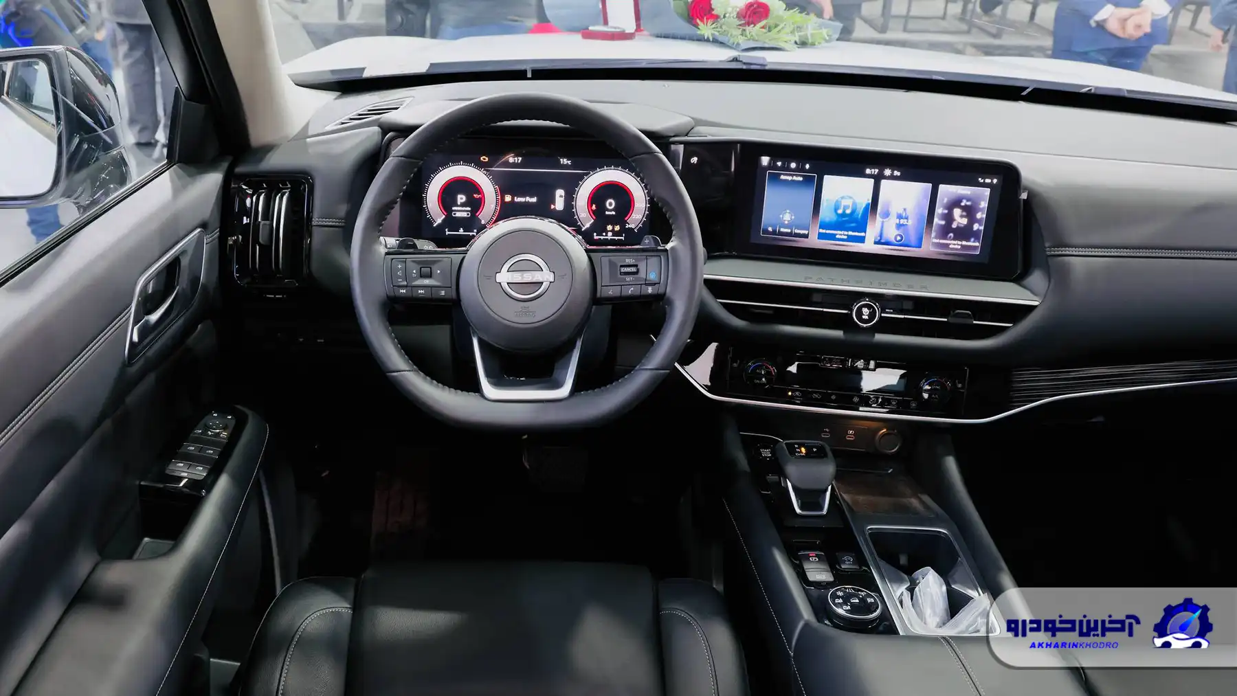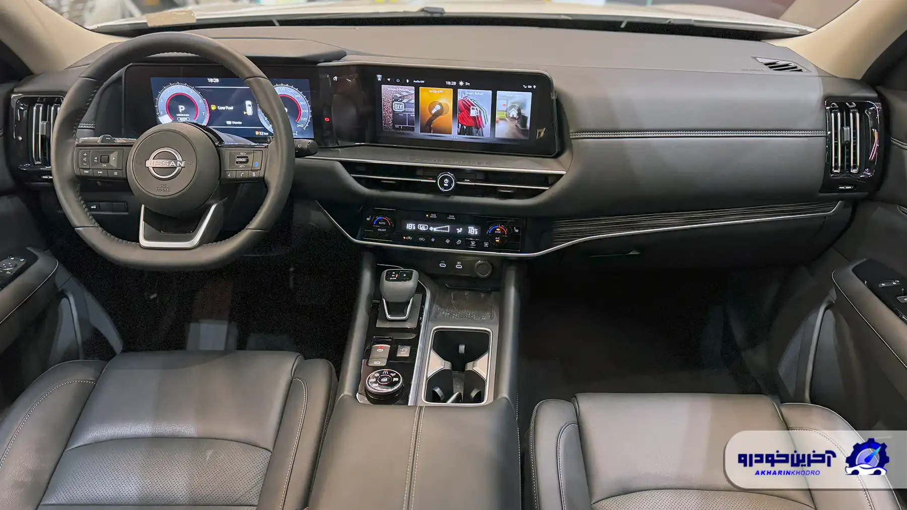 داشبورد پتفایندر جدید طراحی افقی و نسبتاً ساده ای دارد که باعث می شود کابین عریض تر از آنچه هست به نظر برسد. استفاده از خطوط صاف و سطوح نسبتاً حجیم، حس استحکام و اطمینان را منتقل می کند و با ماهیت یک شاسی بلند خانوادگی هم خوانی دارد. متریال به کار رفته در بخش بالایی داشبورد کیفیت قابل قبولی دارد و در نسخه های فول آپشن، تریم های نرم و تزئینات ظریف، فضای کابین را از یکنواختی خارج می کنند. با این حال، در مقایسه با برخی رقبا، طراحی داشبورد شاید کمی محافظه کار و کم ریسک به نظر برسد و هیجان بصری بالایی ایجاد نکند.