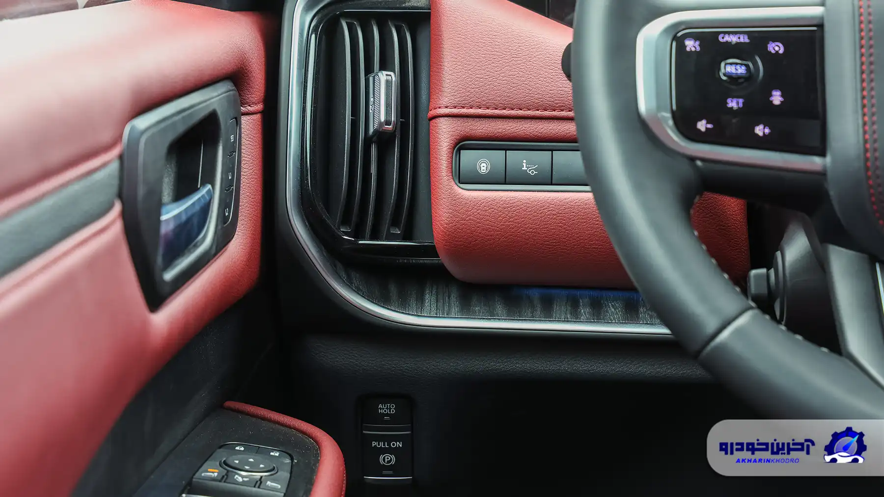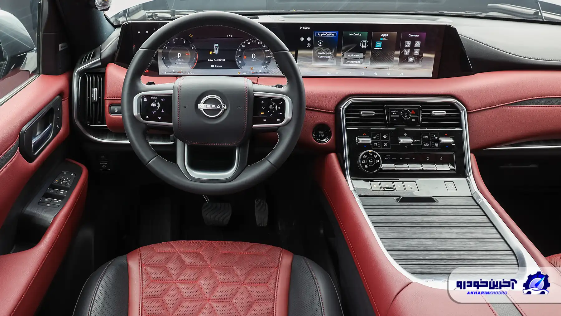 از نظر کیفیت متریال، Nissan Patrol Y63 عملکرد قابل قبولی دارد. استفاده از چرم نرم روی داشبورد و رودریها، تریمهای طرح چوب یا فلزی (بسته به تیپ) و مونتاژ دقیق قطعات، حس یک SUV لوکس فولسایز را منتقل میکند. در بخشهایی از کنسول میانی و قسمتهای پایینی داشبورد، پلاستیکهای سختتر نیز دیده میشود که هرچند از نظر دوام مناسباند، اما در خودرویی در این کلاس قیمتی انتظار متریال کاملاً ممتازتری میرود.