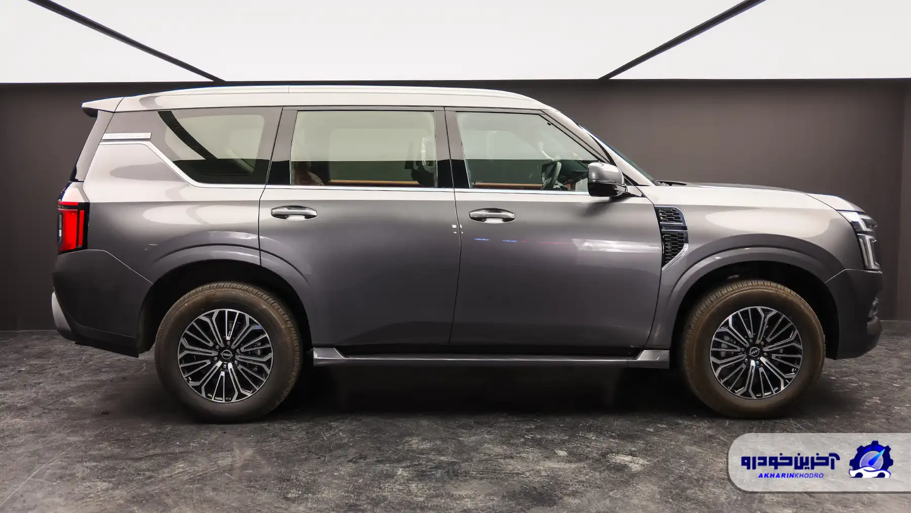 در نمای جانبی، کاپوت کشیده، خط سقف تقریباً صاف و گلگیرهای برجسته، شخصیت کلاسیک و تنومند پاترول را تقویت میکنند. رینگهای بزرگ و فاصله مناسب از سطح زمین، علاوه بر زیبایی، در بهبود زاویه شکست (Breakover) نیز مؤثرند. با این حال، طراحی جانبی بیش از آنکه پر از خطوط تیز و بازیهای حجمی مد روز باشد، بر سطوح ساده و یکدست تکیه دارد؛ موضوعی که ممکن است برای برخی مخاطبان کمی محافظهکارانه جلوه کند، اما در عوض به ماندگاری طراحی در طول زمان کمک میکند.
