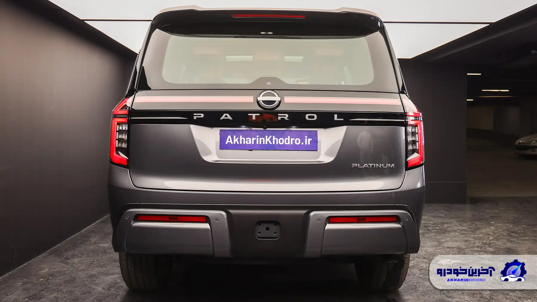 در بخش عقب، چراغهای افقی با گرافیک هماهنگ با جلو، عرض خودرو را بیشتر نشان میدهند. سپر عقب حجیم و طراحی کاربردی آن، در کنار زاویه خروج مناسب، قابلیتهای بیراههنوردی را تکمیل میکند. زاویه خروج پاترول در مقایسه با لندکروزر سری ۳۰۰ رقابتی است، اما به دلیل طول بیشتر بدنه، در برخی شرایط ممکن است اندکی حساستر باشد.