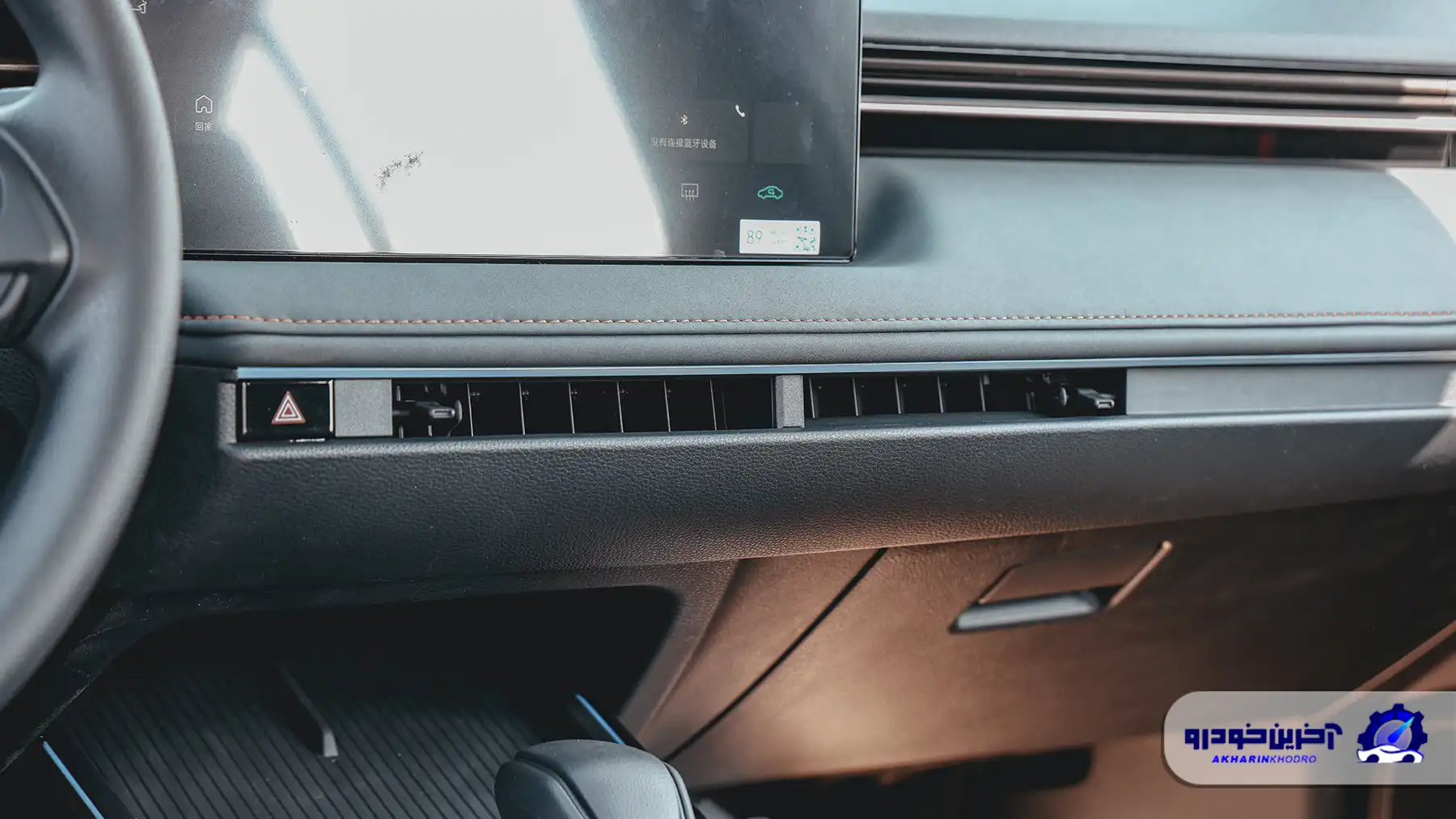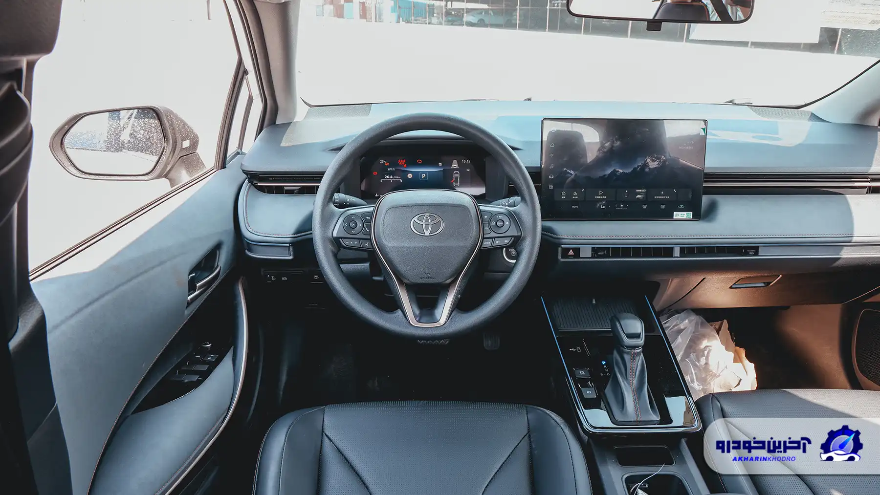 نمایشگر مرکزی بهصورت مستقل و شناور روی داشبورد قرار گرفته و ابعاد آن نسبتاً بزرگ و مدرن به نظر میرسد. این نوع جانمایی، حس تکنولوژیک بیشتری ایجاد کرده و از نظر بصری کابین را به محصولات جدیدتر تویوتا نزدیک کرده است. زیر نمایشگر، دریچههای تهویه باریک و سرتاسری قرار گرفتهاند که با یک خط افقی ممتد، کل عرض داشبورد را به هم متصل میکنند؛ عنصری که به یکپارچگی طراحی کمک زیادی کرده است.
