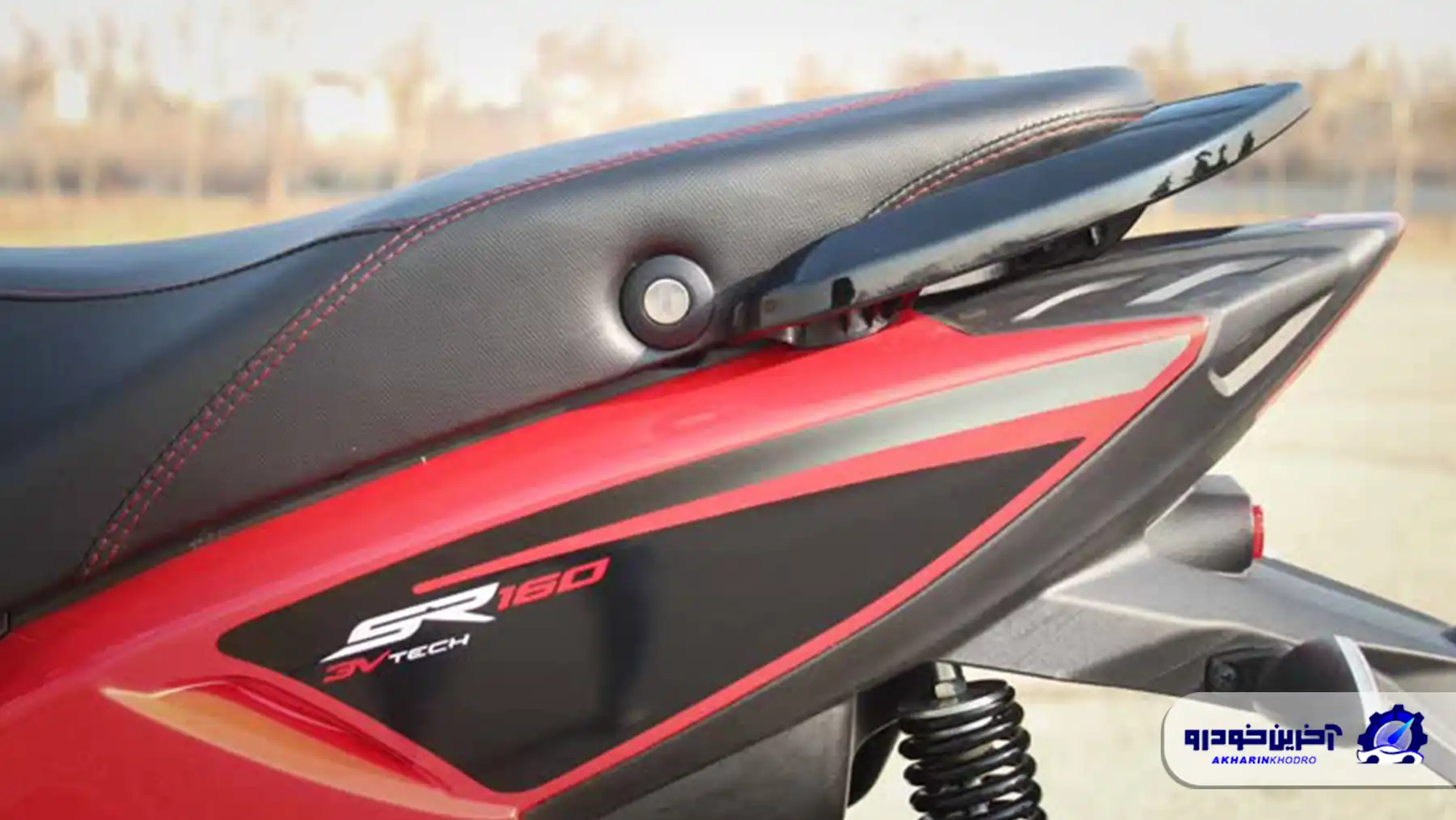 اگر توجهی به بخش انتهای زین موتورسیکلت آپریلیا SR 160 داشته باشیم، شاهد یک دستگیره نسبتا کوچک هستیم که می‌تواند تا حدودی به حفظ تعادل ترک نشین کمک کند. در فضای زیر زین شاهد یک فضای ذخیره‌سازی نسبتا محدود و همچنین باک این موتور سیکلت هستیم. به طور کلی با توجه به اینکه موتور سیکلت آپریلیا SR 160 از جمله موتور سیکلت‌های کلاس اسکوتر محسوب می‌شود، نمی‌توان انتظار یک باک حجیم از آن را داشت و نهایت حجم مخزن سوخت این موتور ۶.۵ لیتر است. چراغ عقب آپریلیا SR 160 تا حدودی کوچک به نظر می‌رسد و از نوع هالوژنی است، ولی در حالت کلی از کیفیت مطلوبی برخوردار است و نمی‌توان ایراد چندانی به آن گرفت. اگر توجهی به قسمت بدنه نیز داشته باشیم، شاهد پوشیده شدن تمامی اجزای موتور سیکلت توسط فلاپ‌ها هستیم که از ایجاد نمای بد جلوگیری کرده است. وزن خشک این موتور سیکلت به طور کلی ۱۱۸ کیلوگرم محسوب می‌شود، ولی اگر مایعاتی مثل روغن و بنزین را در نظر بگیریم این وزن افزایش پیدا خواهد کرد.
